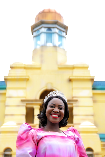 Miss Tourism Buganda has a powerful voice that captivates and draws people in. Her physical and emotional strength underpins her determination, commitment and flexibility. She is fueled by her work for others but is dedicated to the wellbeing of her own body, mind and soul. She is a born leader who trailblazes trend, discourse and social change.